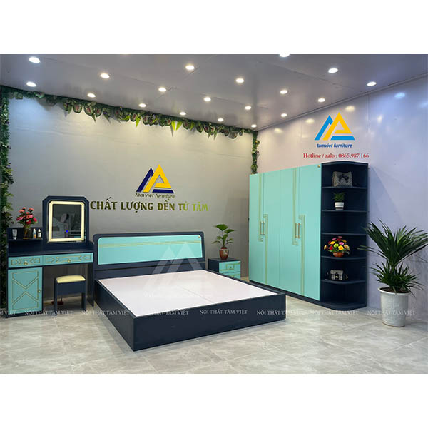 - Đầu giường phối 2 màu xanh biển và xanh ngọc đầy trang nhã