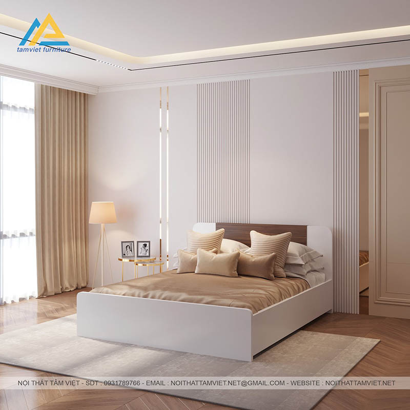 Giường ngủ gỗ công nghiệp sơn trắng GCN-02