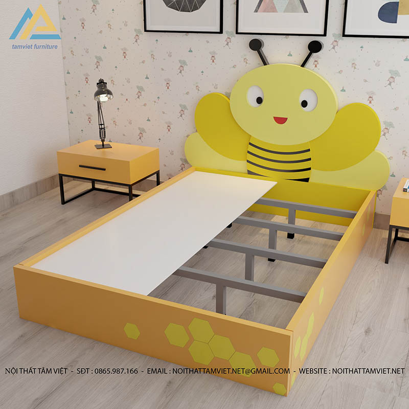 Bé yêu nào cũng sẽ thật vui vẻ khi sở hữu chiếc giường ngủ đúng theo sở thích của bé. Mẫu giường trẻ con GTE-1408 sẽ khiến các bé yêu thích mê vì thiết kế độc đáo với hình ảnh chú ong vàng. Mẫu giường sẽ giúp cho bé sáng tạo hơn, yêu động vật và thiên nhiên qua những hình ảnh ngộ nghĩnh. Giường được làm từ gỗ MDF chất lượng đảm bảo cho sức khỏe của bé.